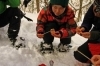 スノーシュー・ポール・ブーツを借りて、ガイドさんからルートと注意事項を聞いた後、準備運動とスノーシューの装着方法を練習。