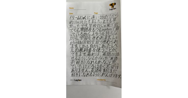通い始めた頃のことを懐かしく思い出しました。確かに、今は、ずいぶんスラスラ英語を話せていますね。しかも、英文を書くのも早くなりました。